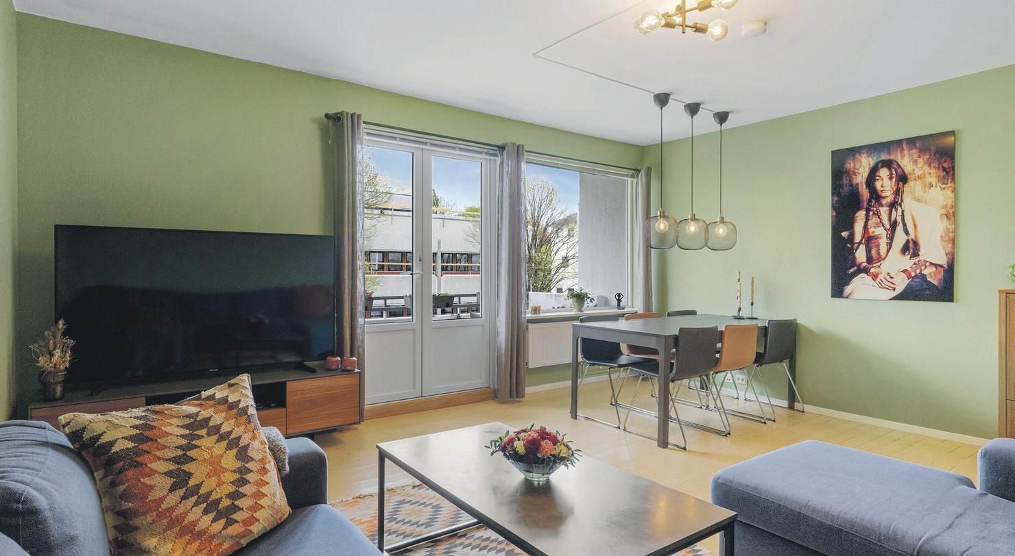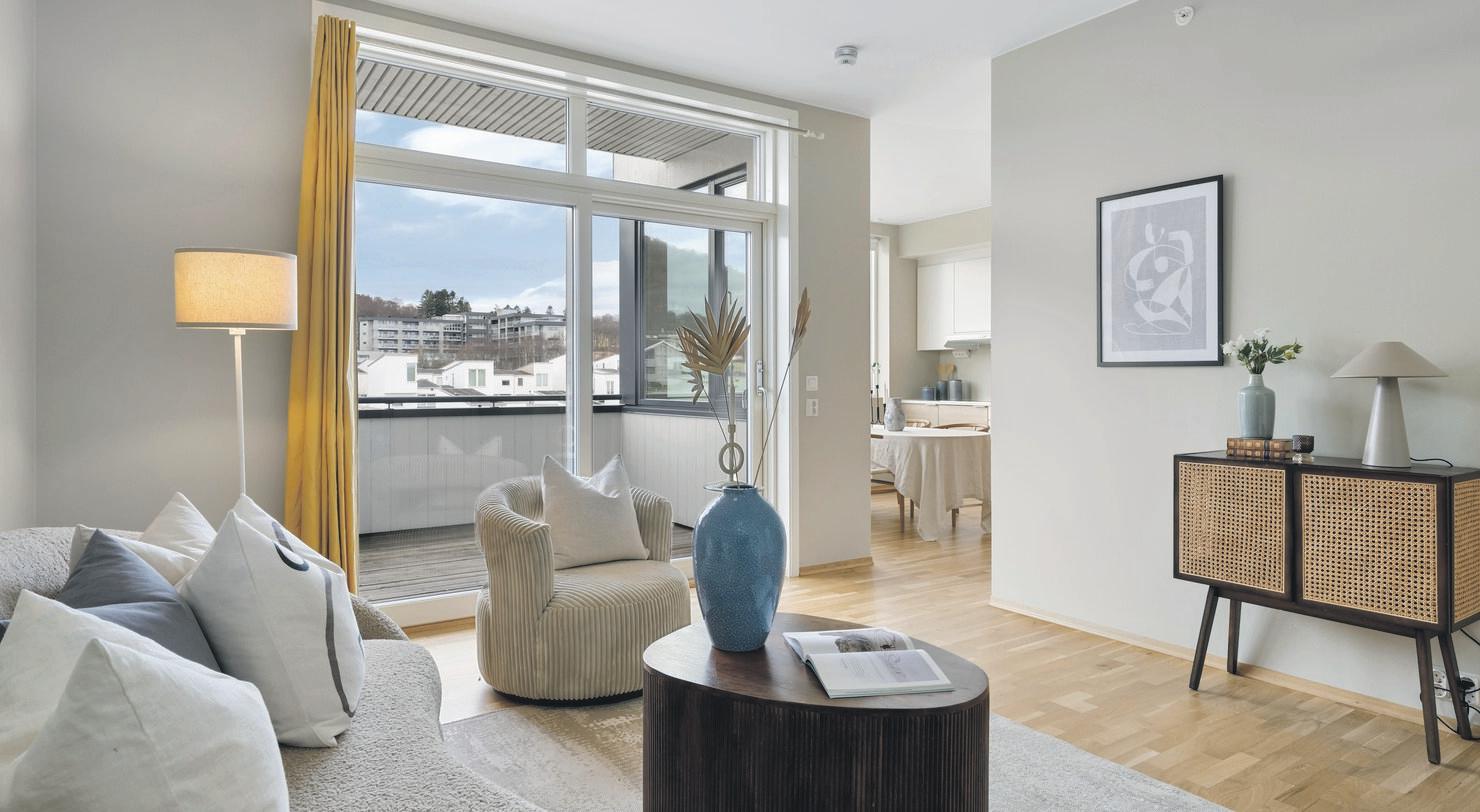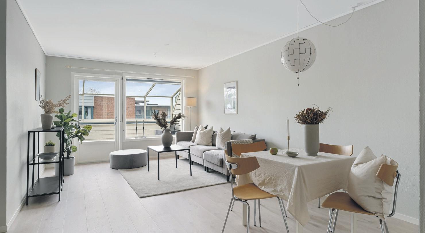 - Lys og luftig stue med lysmalte flater og gode vindusflater. Fra stuen har man utgang til en sørvendt balkong med gode solforhold.
