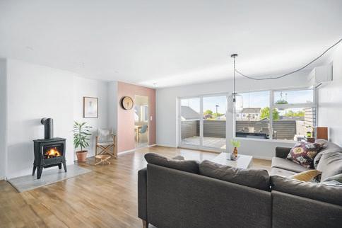 - Stor, luftig stue - plass til flere møbelgrupper - Pent HTH-kjøkken med hvitevarer - 2 soverom - 2 bad - Praktisk separat vaskerom - Gasspeis - Fast p-plass - Mulighet for lader - Stor og tørr bod - Heis - Vannbåren varme - Livsløpsstandard