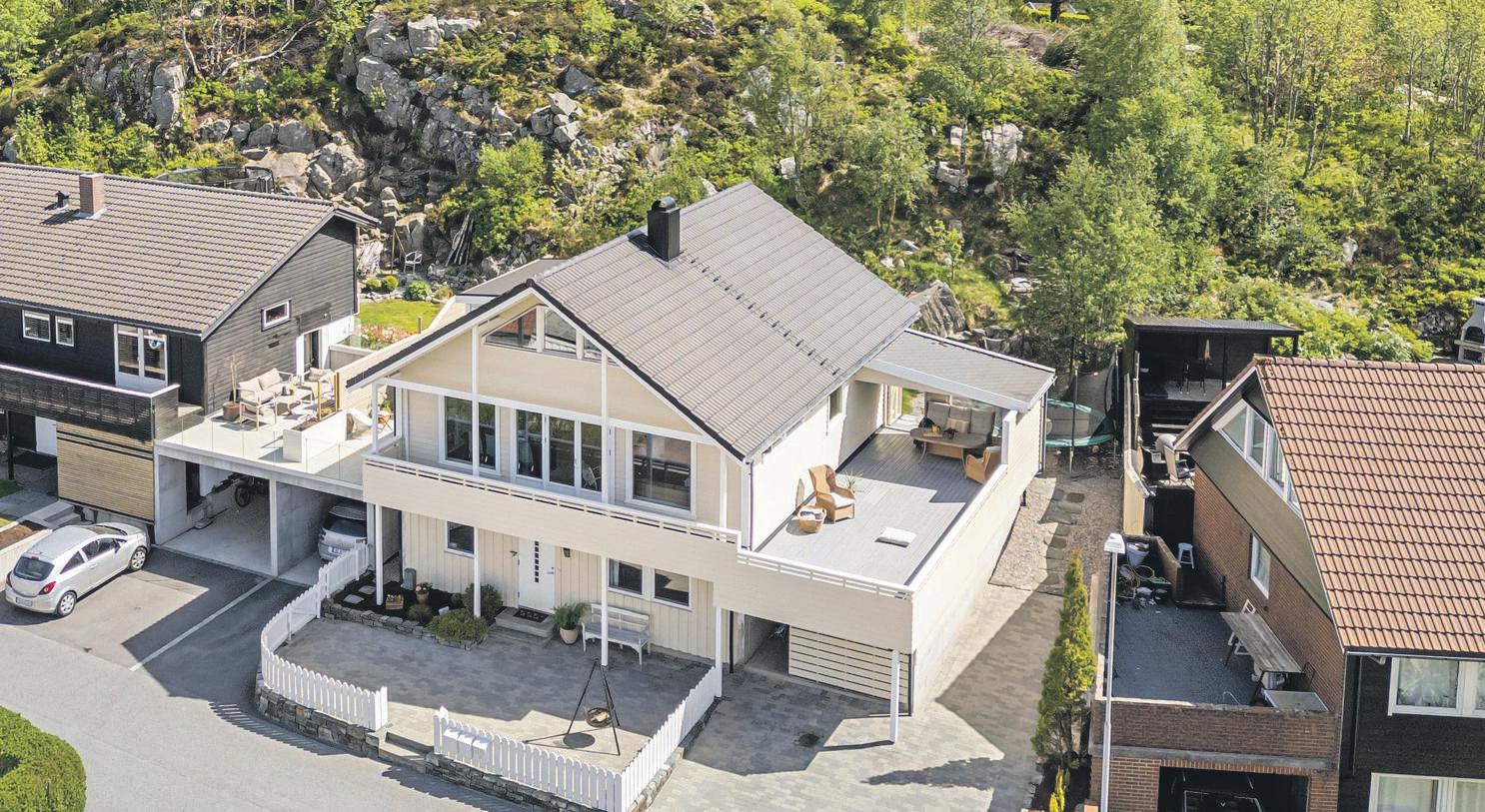 Her bor man med en meget enkel og bra hverdagslogistikk. En praktisk og innholdsrik familiebolig som har blitt påbygget med større kjøkken, ekstra carport og uteområde i senere tid. Skjermet bakside med koselig hage, tomten strekker seg til toppen av fjellet.