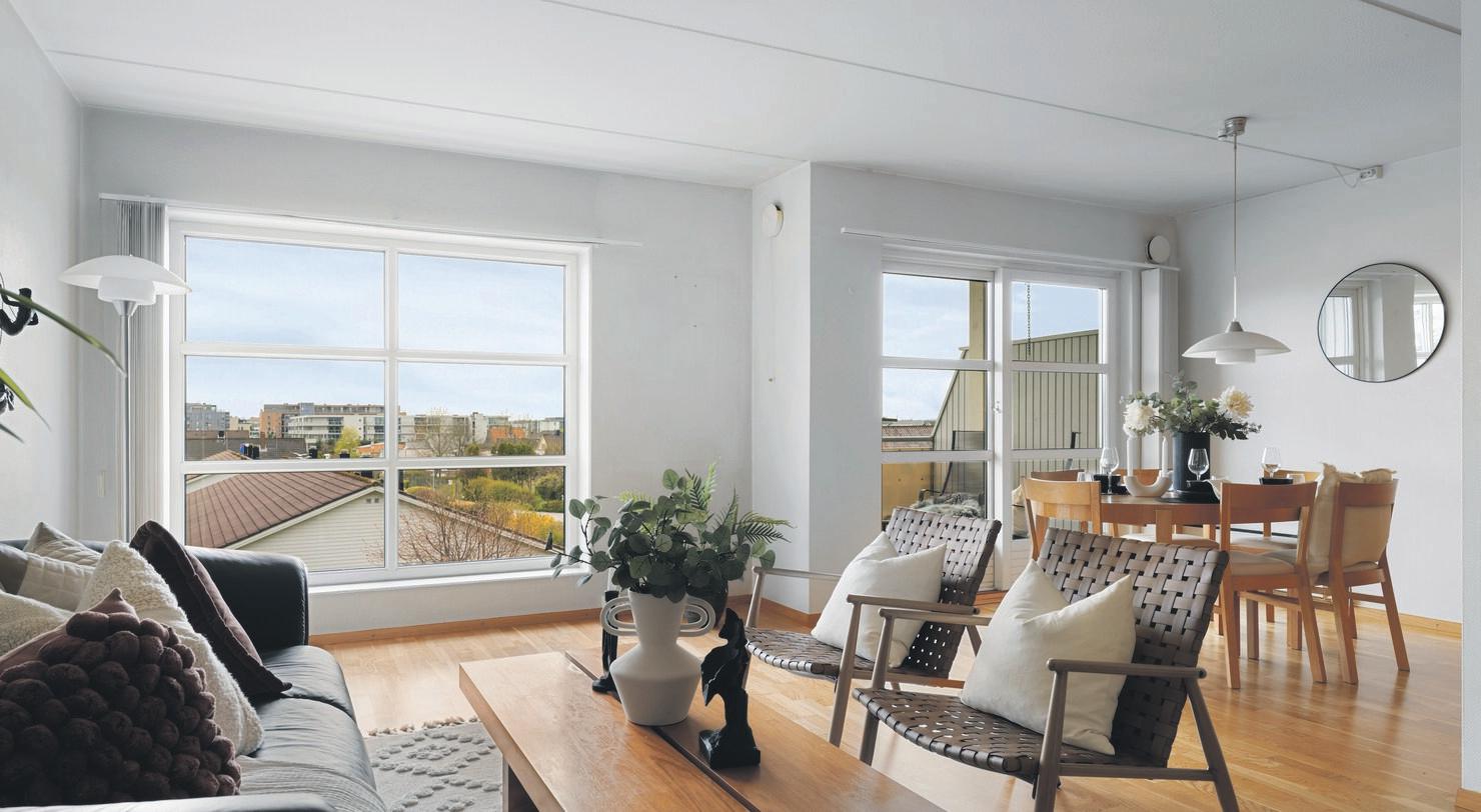 Leiligheten er gjennomgående og har en god planløsning. Ekstra takhøyde, kombinert med store vindusflater gir en god romfølelse.