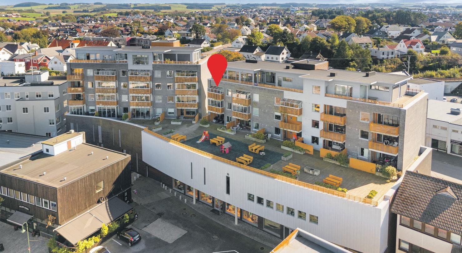 Romslig og velholdt endeleilighet blokk fra 2009 med svært sentral beliggenhet i Nærbø sentrum. Heis. Parkering i lukket anlegg. Innglasset balkong. Innhold: Stue/kjøkken, entré/gang, bad, vaskerom/bod, soverom