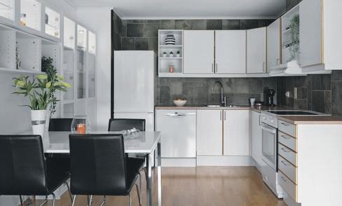 - Kjøkken fra Svanekjøkken med integrerte hvitevarer. Nedfelt kjøkkenvifte