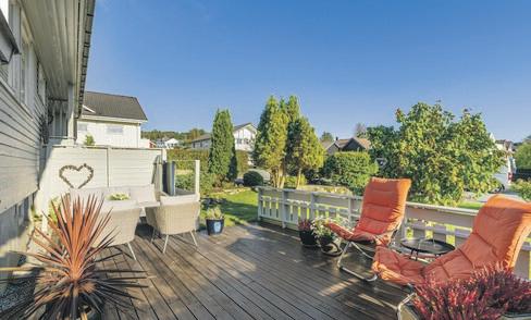 Sørvestvendt hage og terrasse med meget gode solforhold.