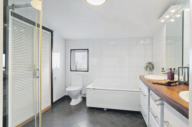 * Flislagt bad med gulvarme, badekar, dusjnisje, innredning med dobbelvask og egen nisje for vaskemaskin og tørketrommel