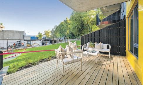 en enebolig på ett plan, med blant annet egen mastersuite med soverom, walk in closet og privat bad. Alle leilighetene har deilig vestvendt uteplass, og de to toppleilighetene får i tillegg hver sin private takterrasse.