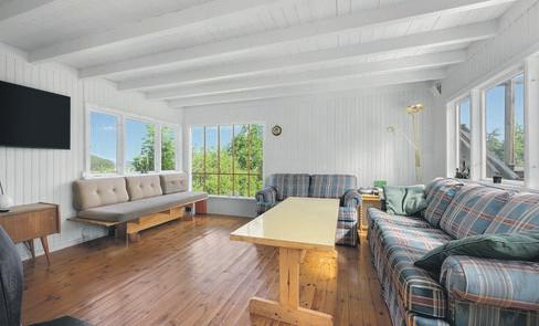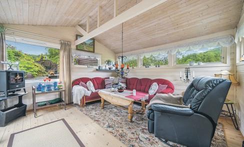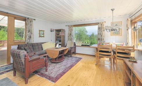 Hytte i naturskjønne omgivelser ca. 150 meter fra sjøen. Romslig tomt med sittegrupper i flere nivåer. Egen båtstø ved sjøen. Velkommen til en hyggelig visning!