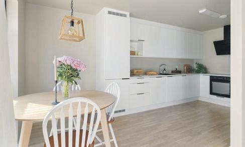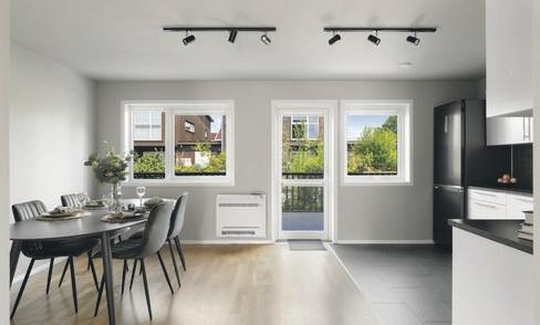 Det er fasiliteter som balansert ventilasjon og fjernvarme som gir boligen et godt inneklima og lave oppvarmingskostnader.