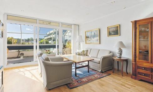 Romslig og pent oppusset leilighet m/stor innglasset hagestue. Sol, utsikt, garasje. God lagring.