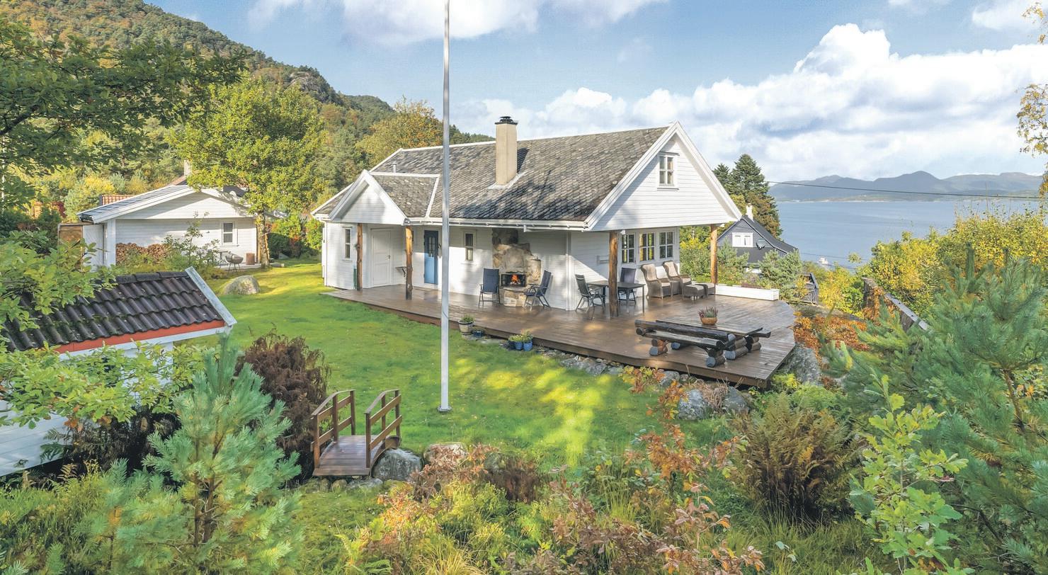 Flott hytte med nydelig utsikt og stor tomt på 2726 kvm. Tilhørende naust og brygge.