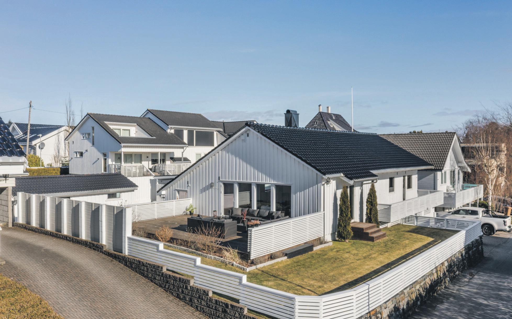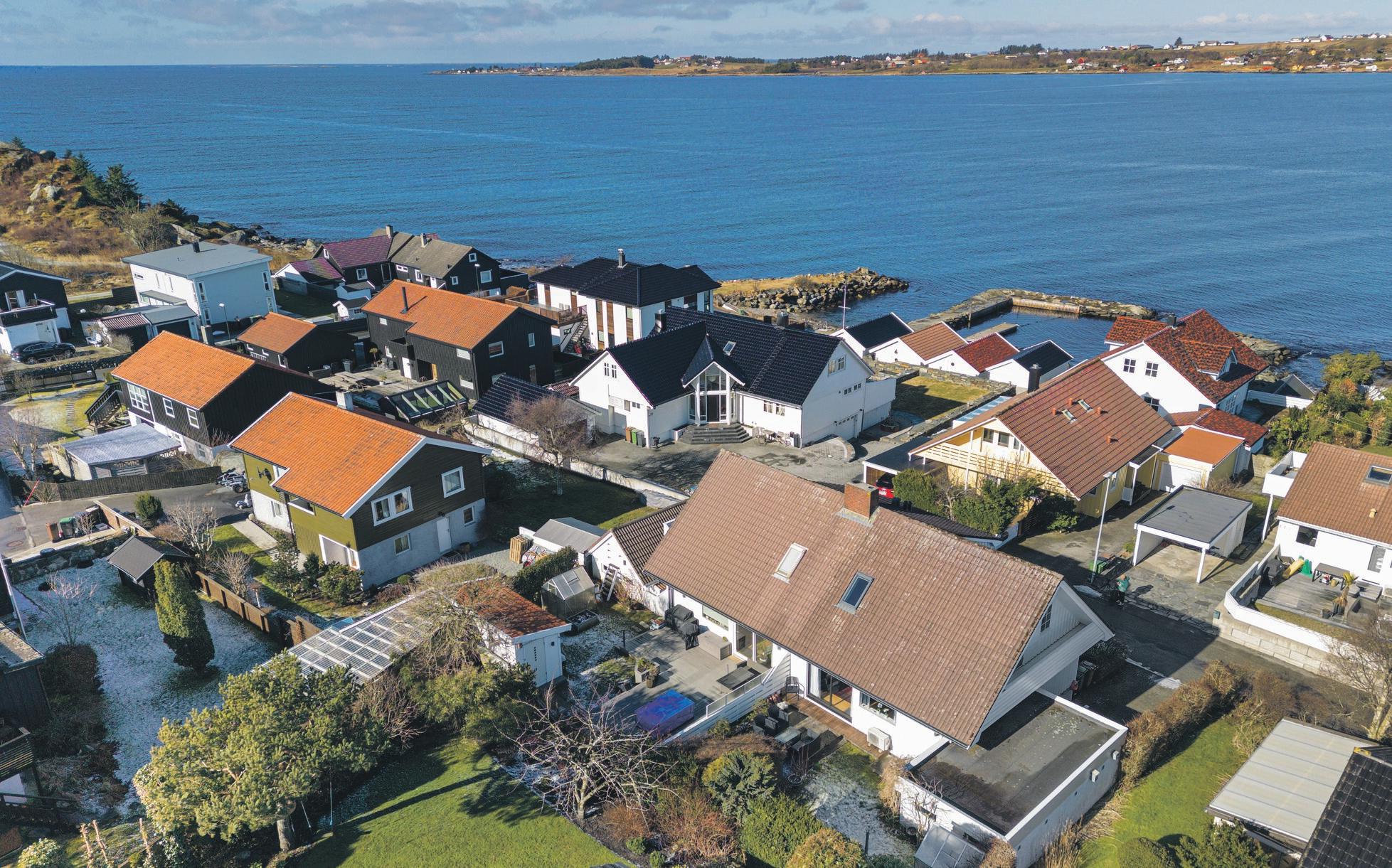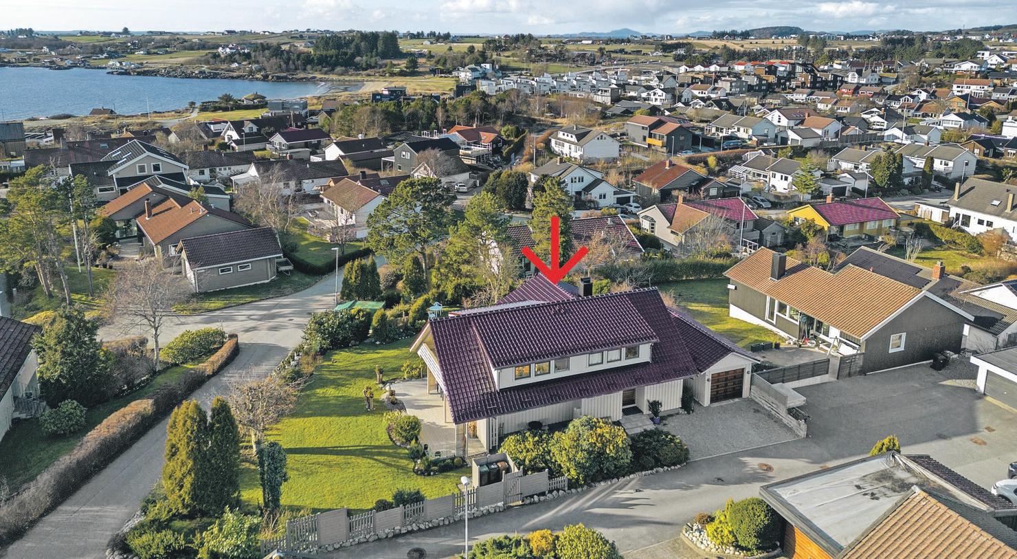 SpareBank 1 SR-Bank ekstra lav rente på det første boliglånet og halv pris på digital samboerkontrakt.Særegen arkitektur med langstrakt fasade og panoramavinduer mot fjorden. Boligen er tegnet av arkitekt Finn Pedersen og kjennetegnes av buede former, åpne løsninger og en luftig takhøyde. Husets midtpunkt er stua med åpen sirkelformet peis, 6 meter takhøyde og vinduer fra gulv til tak.