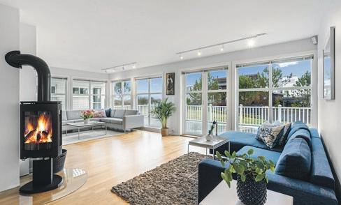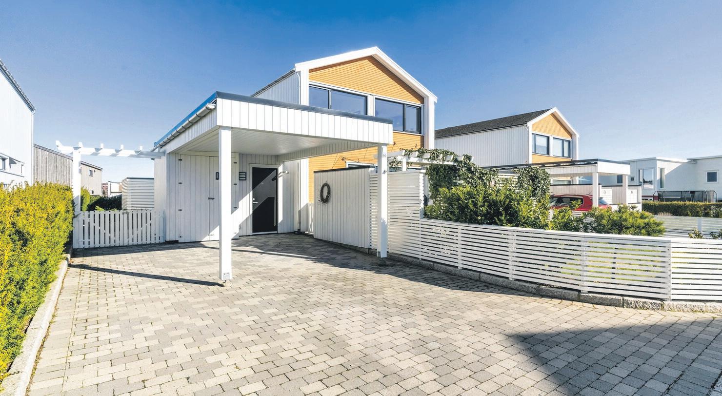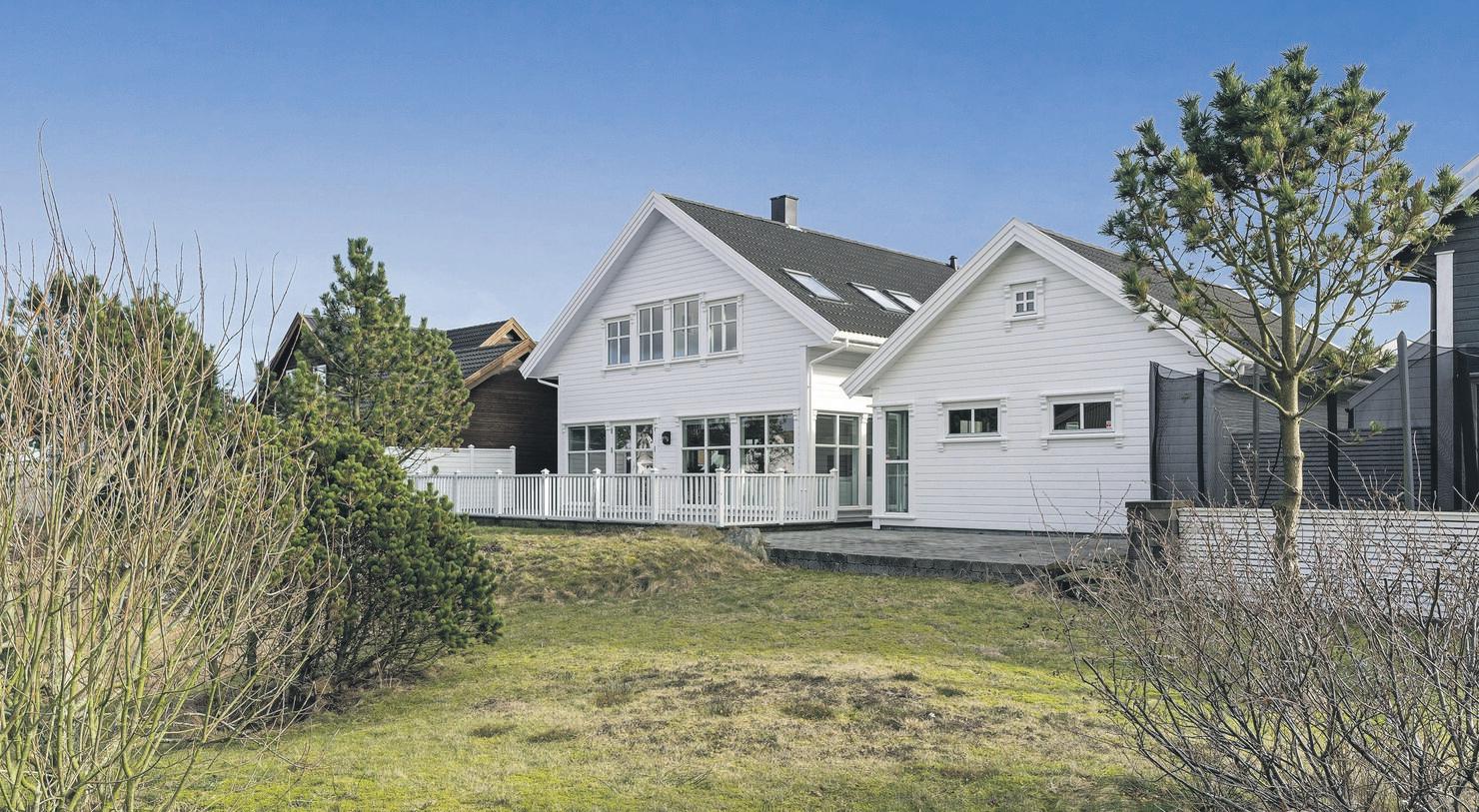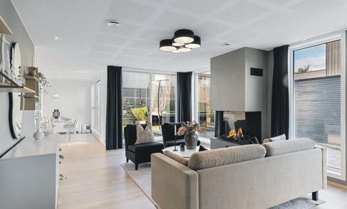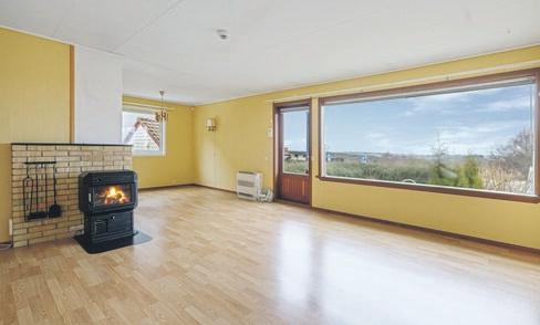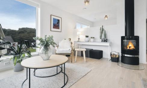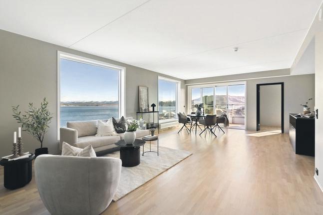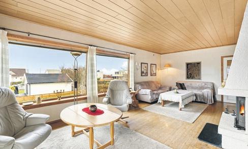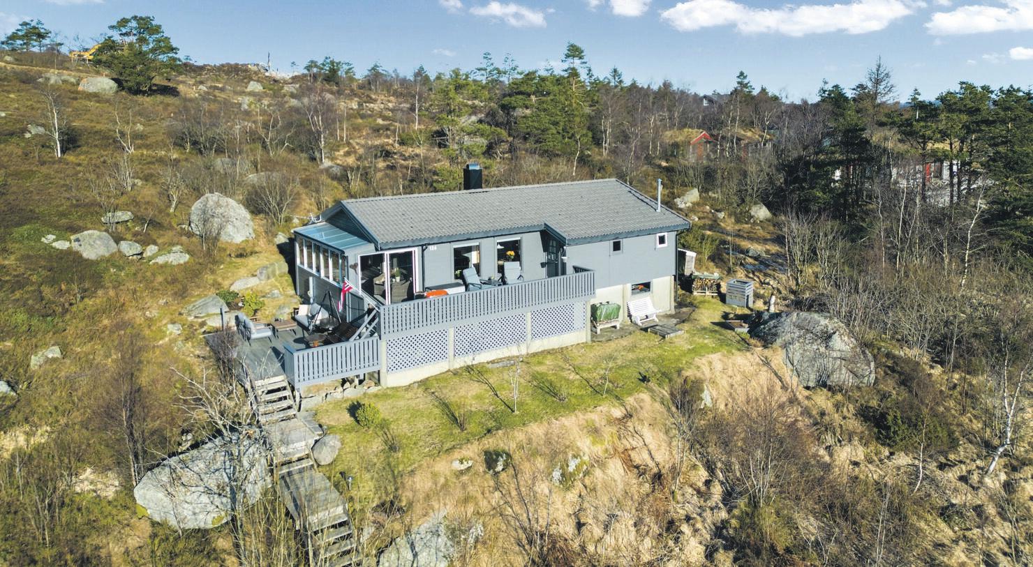SpareBank 1 SR-Bank ekstra lav rente på det første boliglånet og halv pris på digital samboerkontrakt.Særegen arkitektur med langstrakt fasade og panoramavinduer mot fjorden. Boligen er tegnet av arkitekt Finn Pedersen og kjennetegnes av buede former, åpne løsninger og en luftig takhøyde. Husets midtpunkt er stua med åpen sirkelformet peis, 6 meter takhøyde og vinduer fra gulv til tak.
