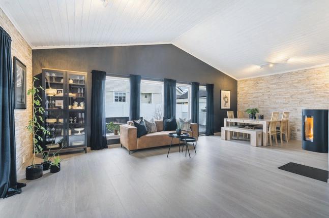En nydelig og meget oppgradert enebolig beliggende flott til på Nedre Vaulen. Tomten er flott opparbeidet og det er flere uteplasser en kan flytte seg rundt på. Boligen fremstår som meget lekker og med moderne løsninger og fargevalg. Du kommer inn i en åpen stue kjøkkenløsning fra gang, med mulighet til å møblere med flere seksjoner.