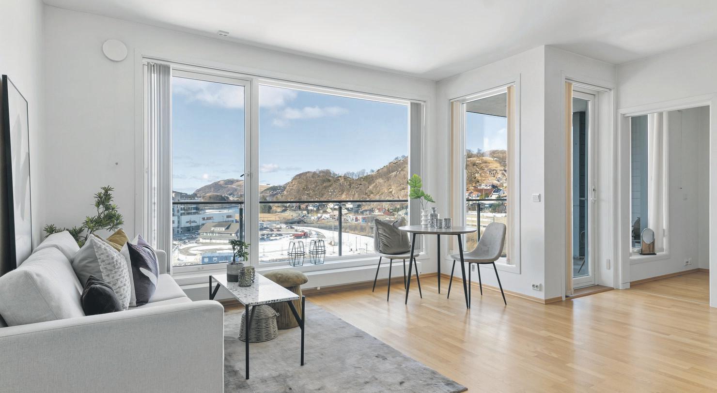 Velkommen til Mitt Hillevåg! En flott påkostet, ny leilighet i 8. etasje med en storslått utsikt. Her finner du alt du kan ønsker deg i en ny leilighet. God standard, praktisk planløsning, 2 soverom og bad, store vindusflater, god takhøyde, en rommelig balkong og en flott utsikt mot både hav og fjell.