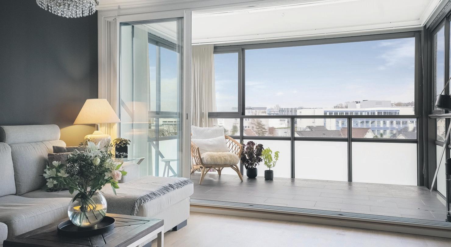 Kjekk leilighet med sol og utsikt | 2 soverom | Stor innglasset veranda | Parkering i lukket anlegg | Heis