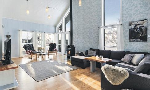 Boligen går over 2.etasjer, med åpen stue og er bundet sammen av flott glasstrapp.