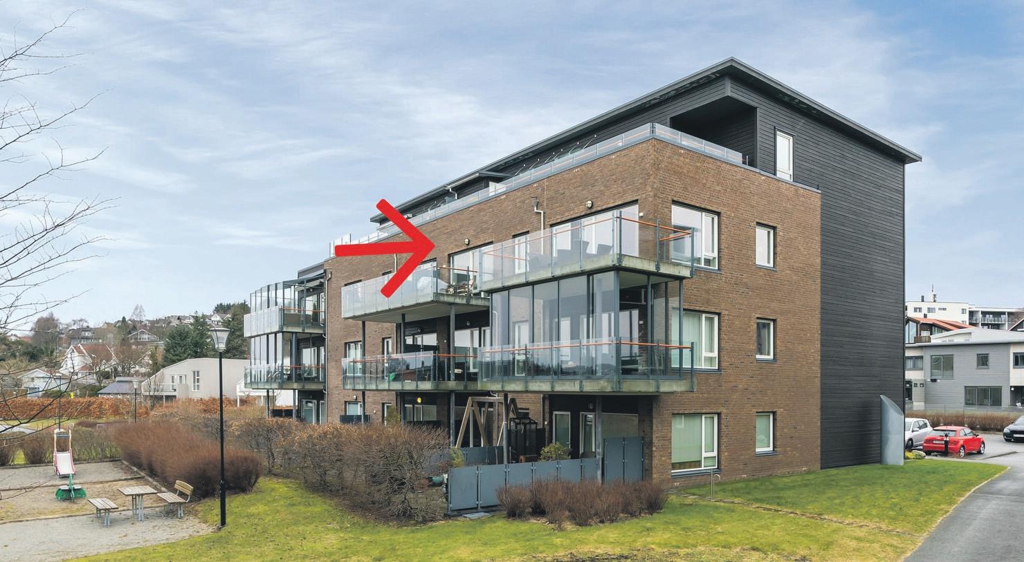 med 2 soverom og balkong. Garasjeplass. Heis.