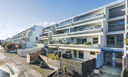 Delikat, arealeffektiv leilighet med god, sentral beliggenhet. Avskjermet terrasse med gode solforhold. Parkering. El.billader. 2 boder
