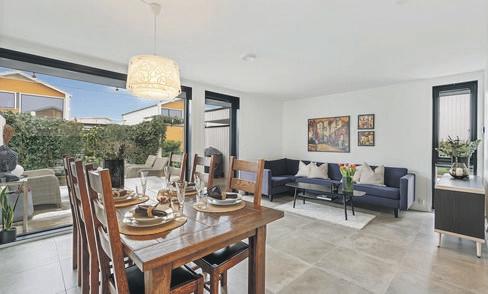 Fra stuen har du utgang til terrasse/hage hvor du har sol fra morgen til kveld.