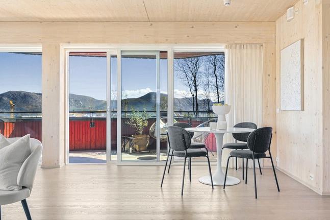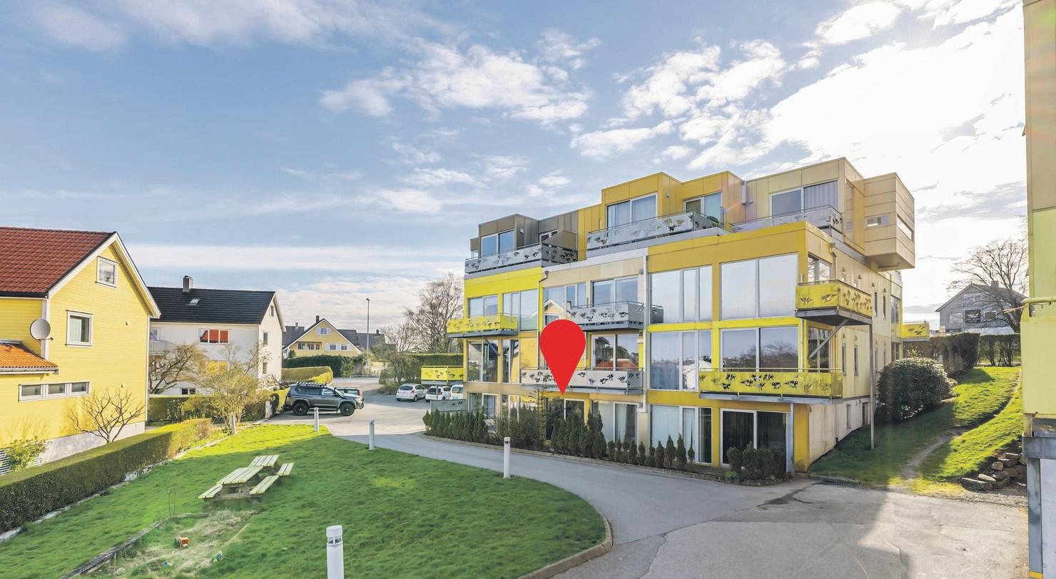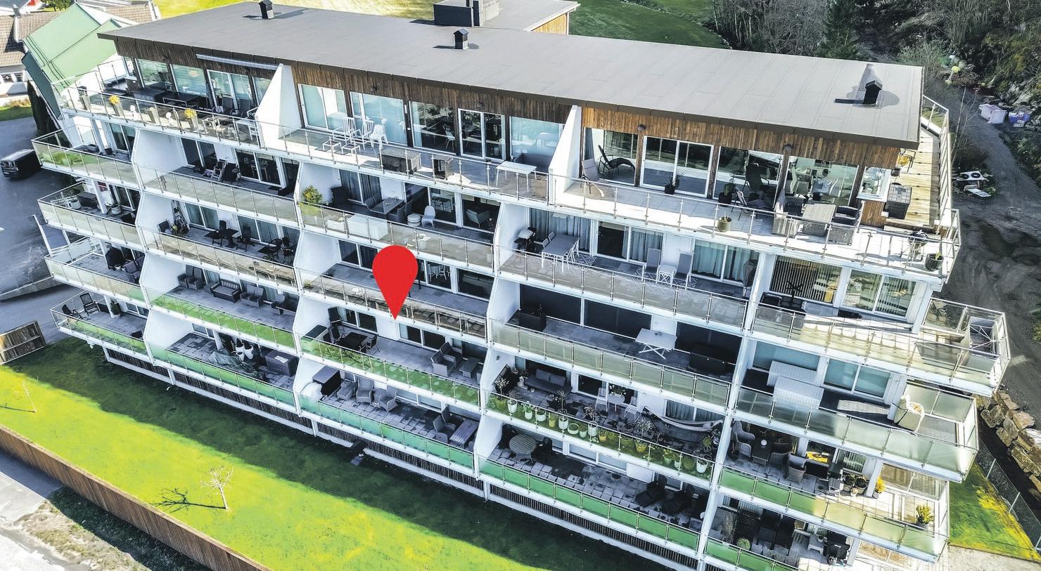 Fra de store stuevinduene er det nydelig uhindret utsikt til fjord og fjell. Leiligheten fremstår i god, velholdt stand og ble ved oppføring særdeles påkostet. Det er kjekk og praktisk planløsning med 2 bad, 2 soverom (kan deles opp til 3), eget vaskerom og stue/kjøkken.