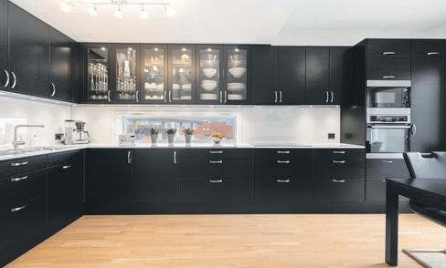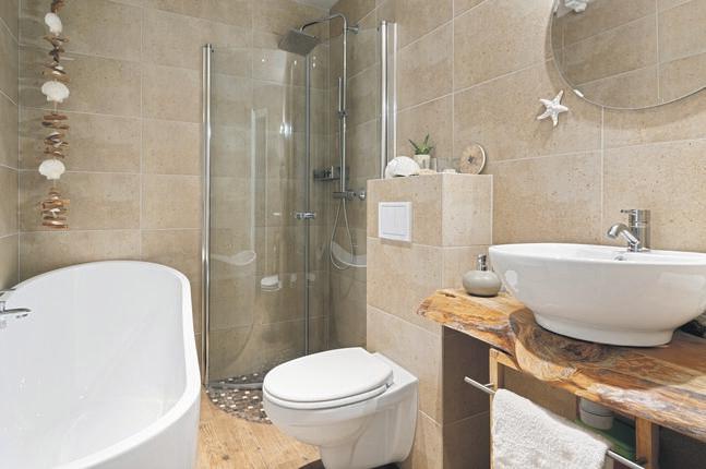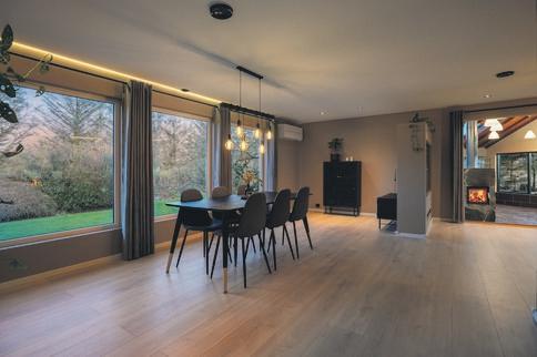 Laminat på gulv og utstrakt bruk av mdf plater på veggflater.