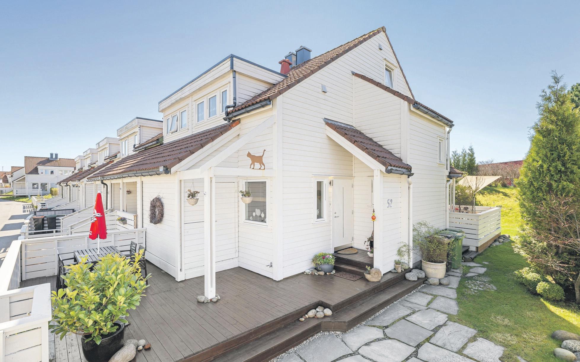 krister.stangeland.trones@em1sr.no Visning Ma. 29. april kl 16:30-17:30 v/påmelding Flott rekkehus med attraktiv beliggenhet | Pent opparbeidet og solrike uteområder | Parkering i garasje | 3 soverom Prisantydning kr 3 590 000 Andel fellesgjeld kr 115 255 Omkostninger kr 8 981 Totalpris kr 3 714 236 Felleskostnader 5 133 pr. mnd. BRA/BRA-i ca. 156/140 m² Antall