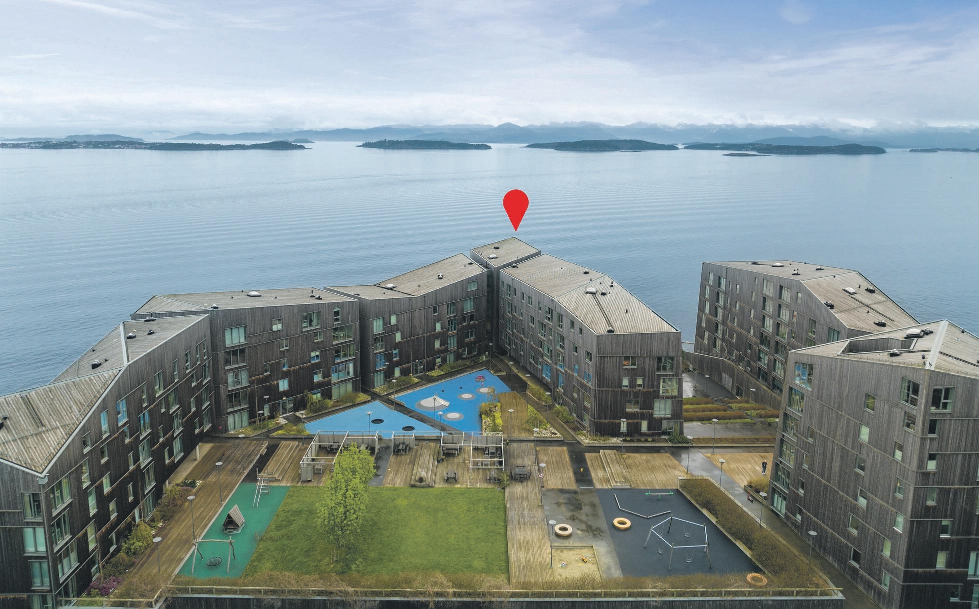 Velkommen til denne unike og eksklusive toppleiligheten på Siriskjeret. Leiligheten ligger helt ytterst mot fjorden i det prisvinnende sameiet 'Vannkanten' som ble oppført i 2014.