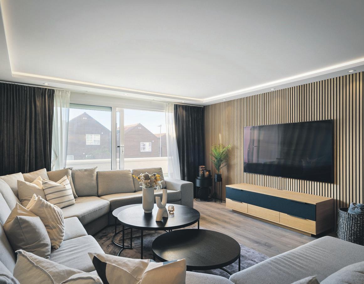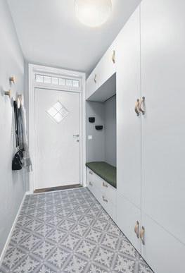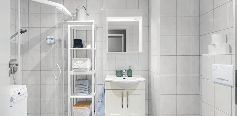 Malt helt opp, skiftet gulv og tak himlet ned m/spotter i 2017. Smart løsning gir naturlige soner for både spisebord og tv-stue i eget innhukk, og på kjøkkenøy nyter du kaffen med PC'en. God skapplass og arbeidsbenk på et kjøkken med hvit og tidløs innredning. Kjøkkenøy markerer skille mellom stue og kjøkken. Også plass til godstol. Solrik balkong m/levegg og tak. Soverom m/inng. på to sider for maks utnyttelse og mulighet for skapplass. Badet er tidløst flislagt og m/eget innhukk for maskiner. Entre m/skyvedørsgarderobe og plass for oppheng. Bod like v/inngangsdør m/god hylleplass. Heis, garasjeanlegg og moderne fasiliteter.
