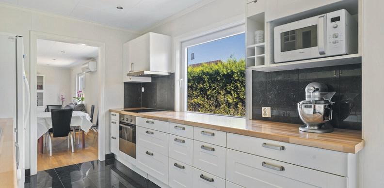 Lys, hyggelig og tiltalende enebolig i et ettertraktet område. Flott sjøutsikt, solrik tomt, garasje og lekkert kjøkken.
