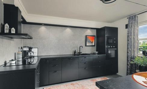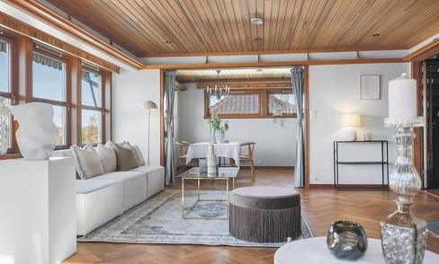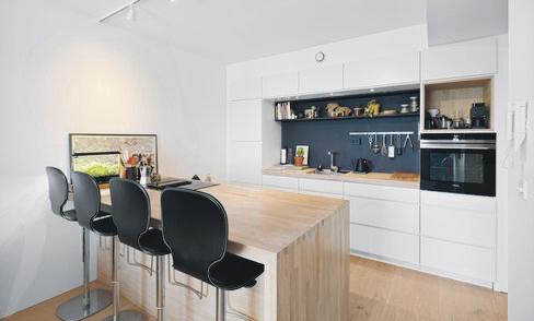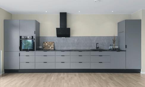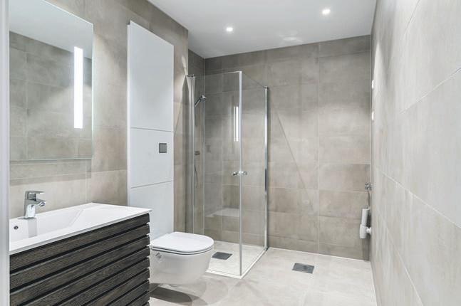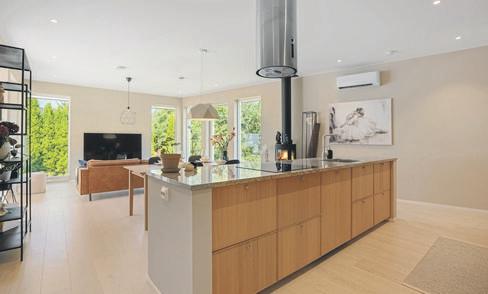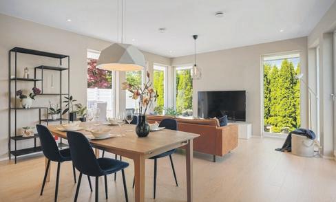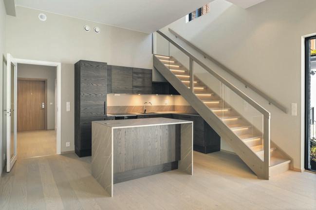 1.et: Flott kvalitetskjøkken fra Svane med smarte løsninger og lekre detaljer. Spisestue med god plass til stort spisebord. Utgang til en av leilighetens to balkonger, begge på 12 kvm hver. Elegant bad/vaskerom. Romslig hovedsoverom. Praktisk bod. Lekker trapp med integrert lys. Ekstra god takhøyde.