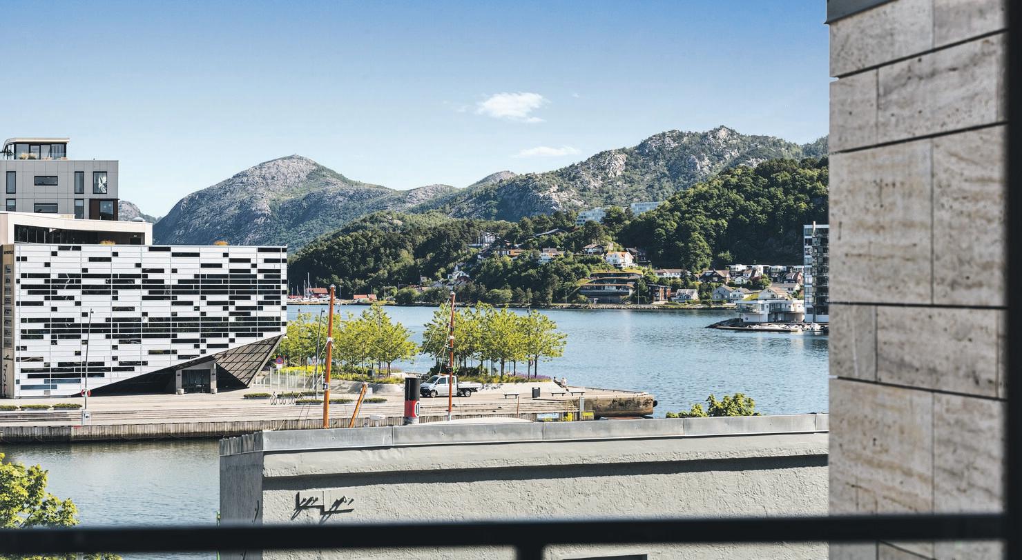 Moderne og stilren 2-roms selveier med to franske balkonger og idyllisk sjøutsikt. Sentral beliggenhet, nært «alt»!