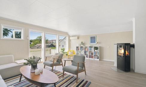 Innholdsrik enebolig rett ved Sandvedparken | 3 soverom | Skjermet og solrik hage/flere terrasser | Garasje