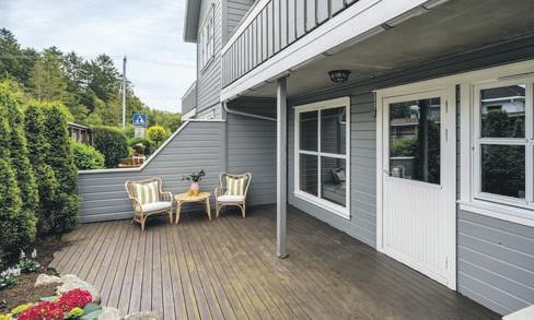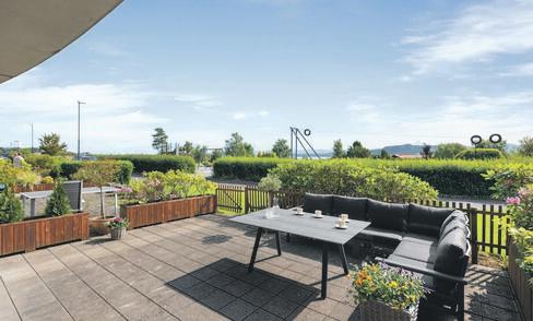 Her bor en i fremste rekke, og grenser mot friområde. Leiligheten som ligger i første etasje har enkel adkomst og et utrolig flott opparbeidet uteområde. Carport.