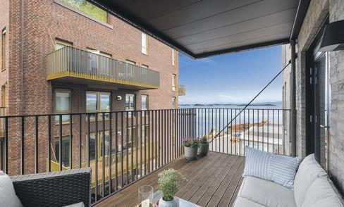 Strøken 2-roms selveierleilighet fra 2024 | Romslig balkong med sjøutsikt | Gjennomgående høy standard | Heis Prisantydning