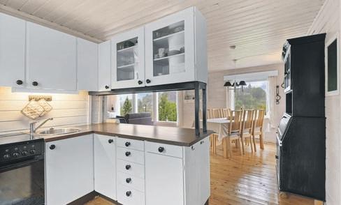 Stue med flott synlig laftet tre, åpen peis. Kjøkken, røropplegg er av rør-i-rør, med avløp av plast. Kjøkken profilerte, malte fronter og benkeplate i laminat utførelse. Flott uteområde med herlig veranda