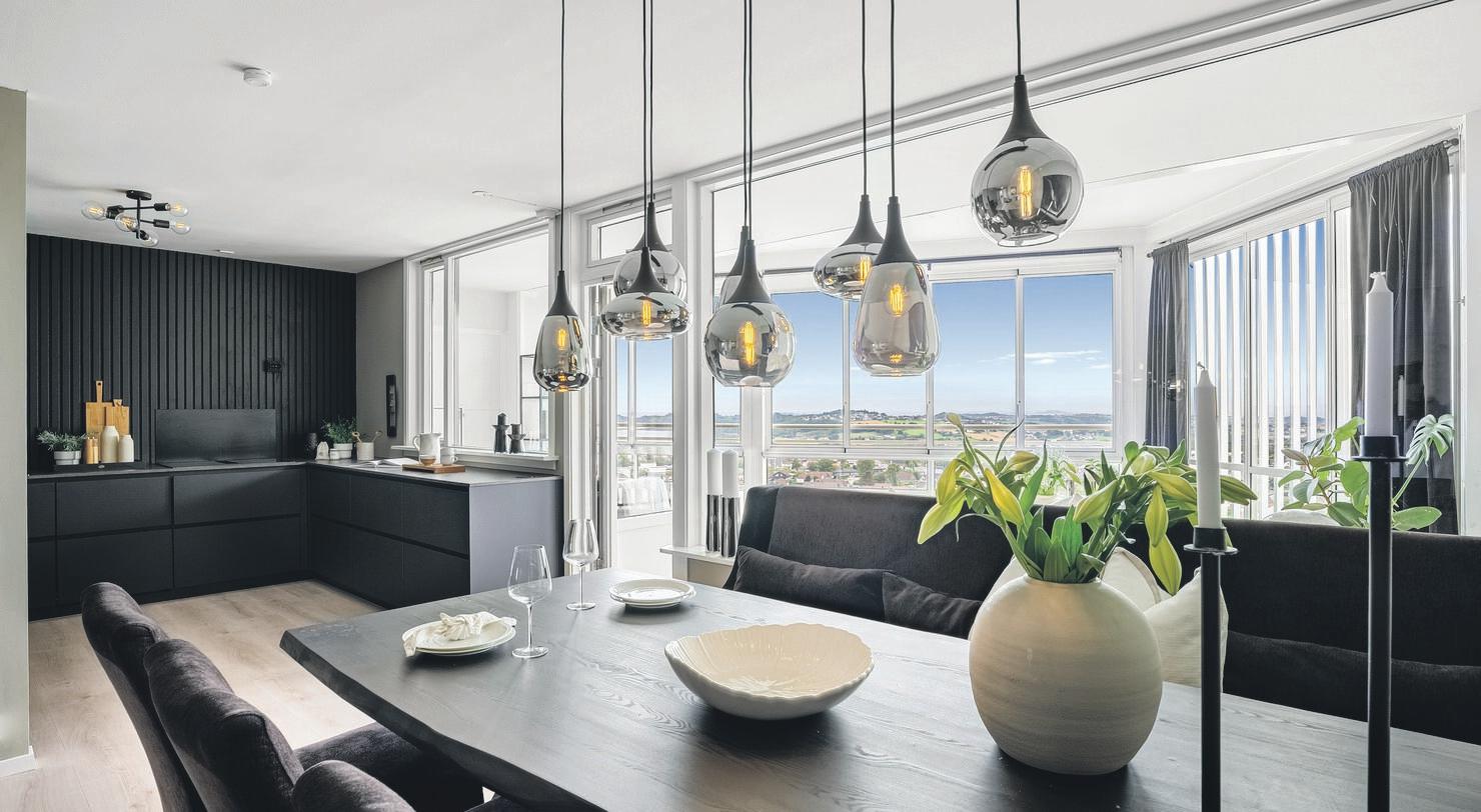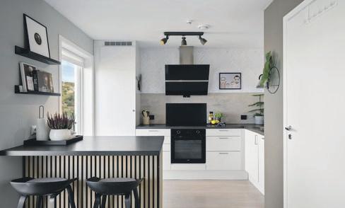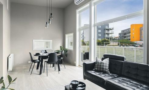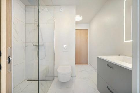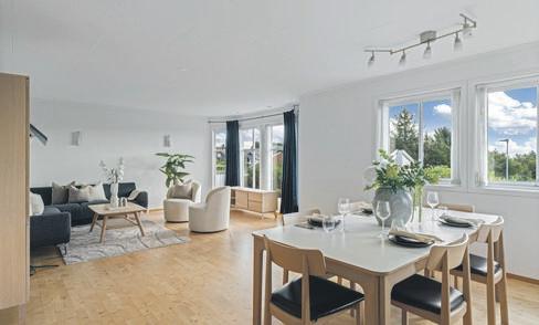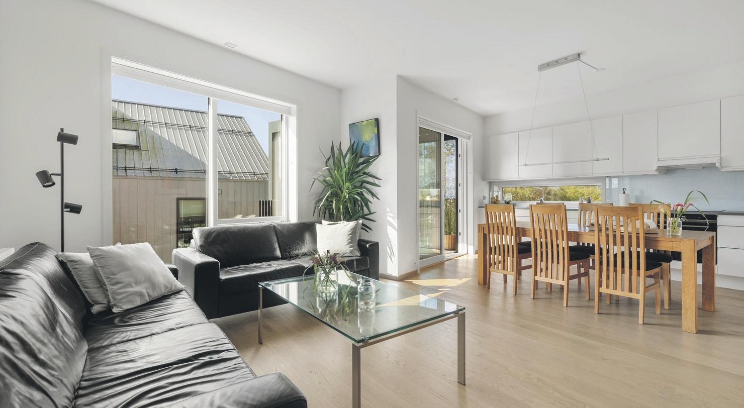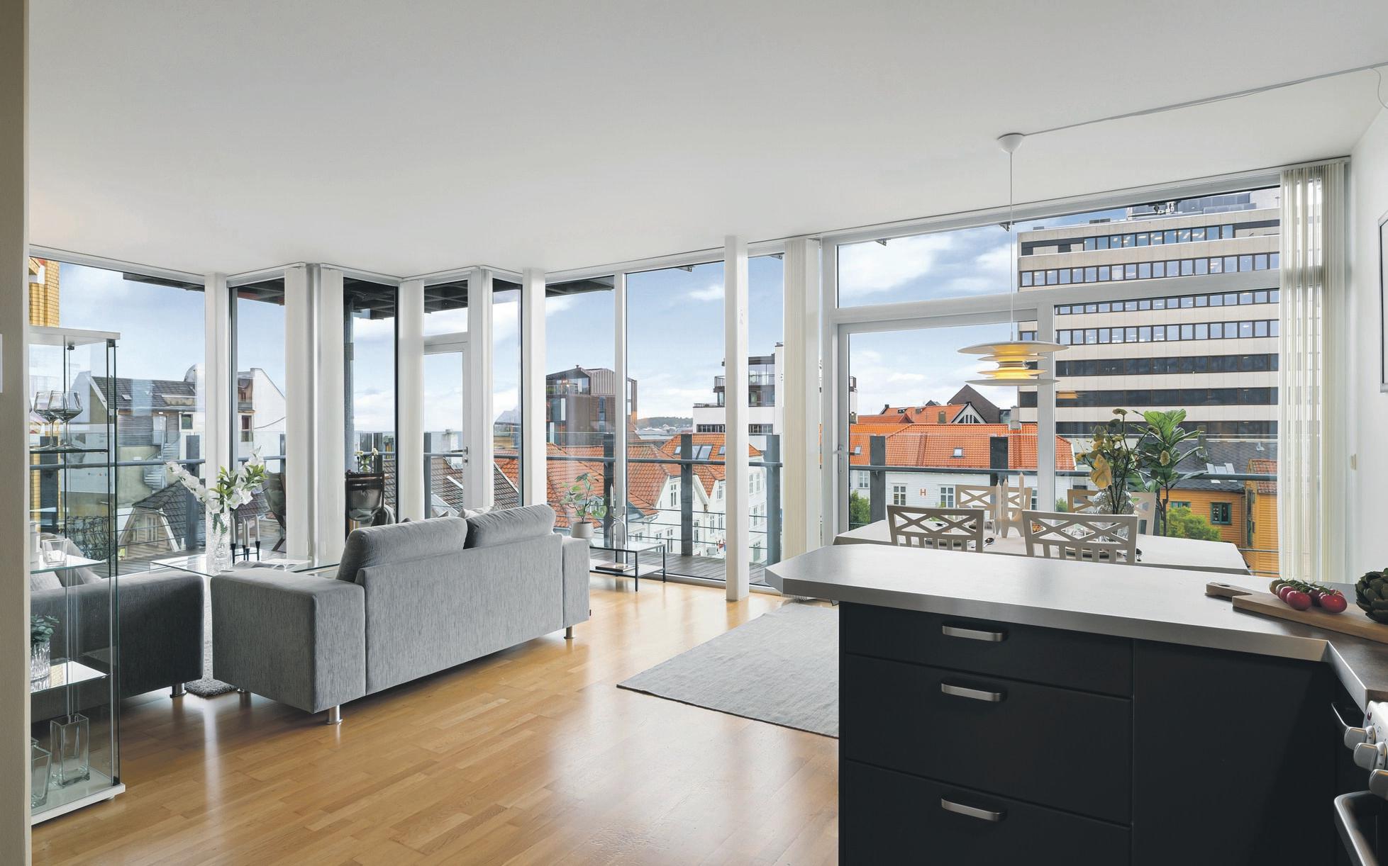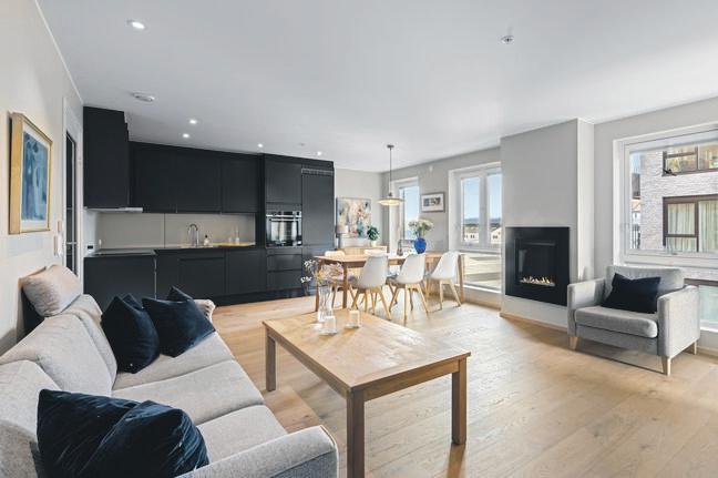 - Leiligheten er gjennomgående med store vindusflater mot nordøst og sørvest. Det er innholdsrik planløsning og kvalitetsmaterialer. Vannbåren varme og balansert ventilasjon.