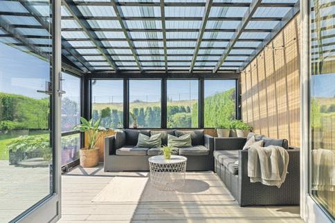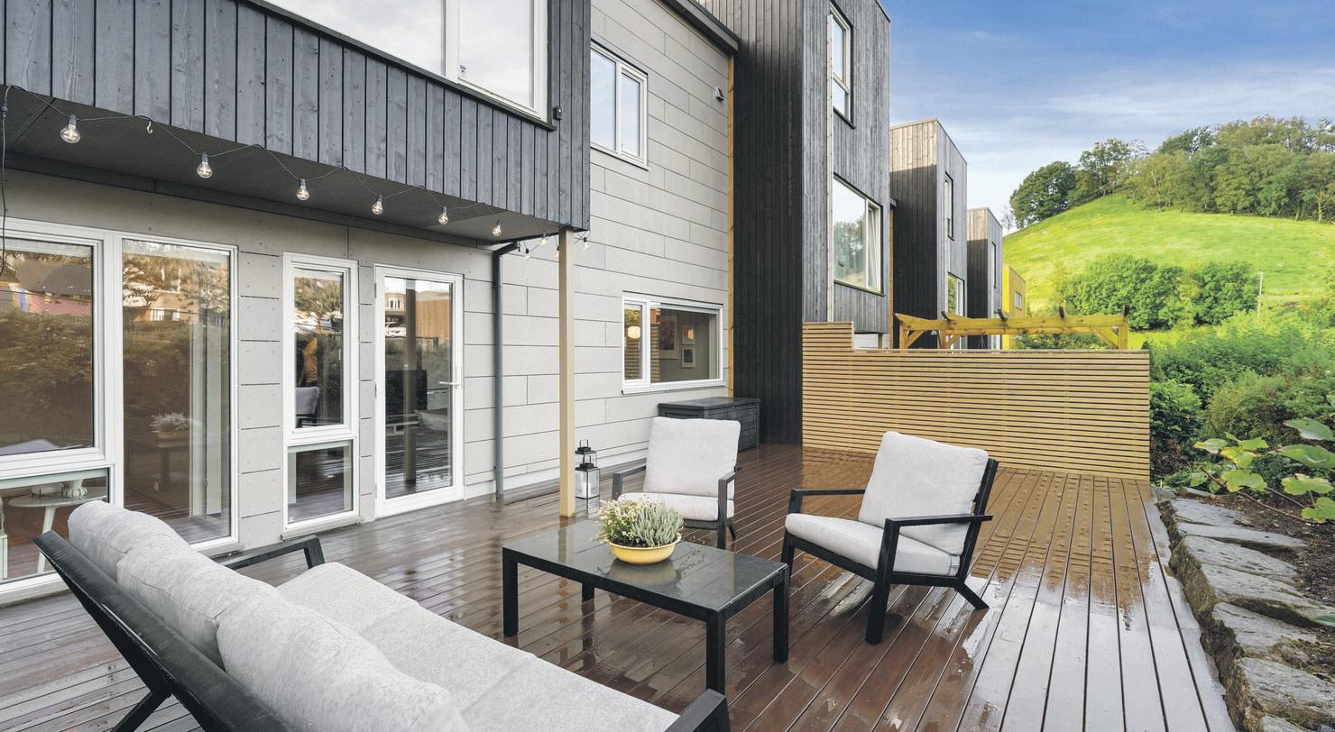 - Stor sør- og vestvendt veranda med utsikt og gode solforhold
