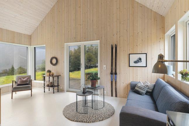Hytta har et stilrent uttrykk med store vindusflater og høy himling i deler av stua, som gir en lys og luftig atmosfære. Romløsningen er praktisk, og hemsen gir ekstra gulvareal (ikke målbart). Ute finner du en romslig terrasse der du kan nyte naturen og stillheten.