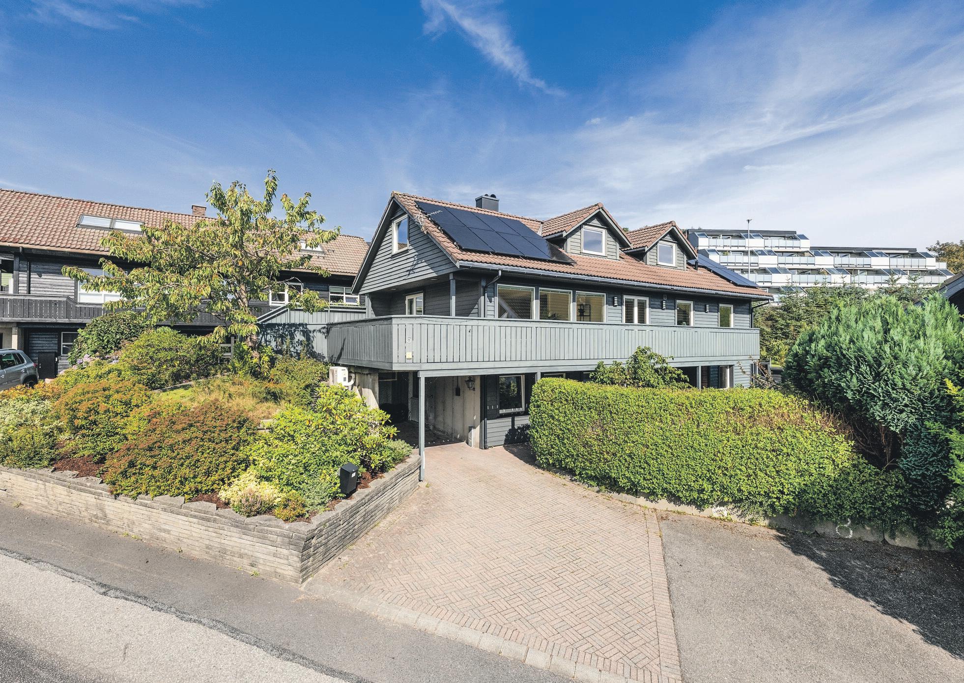 Lekker, innholdsrik enebolig i kjede over 3 plan. Praktisk og funksjonell planløsning. Flere solrike uteplasser i tillegg til takterrasse. Flott utsikt. Meget barnevennlig beliggenhet i et rolig tun.
