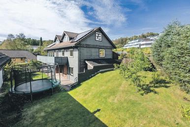 Pen familiebolig m/leilighet, dobbelgarasje. Pent opparbeidet tomt. 4 bad og 6 soverom. Gode solforhold fine uteplasser.