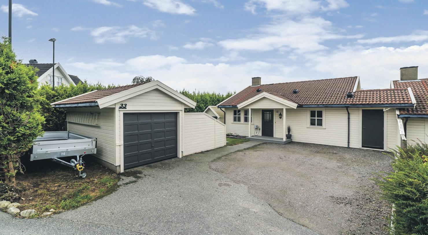Her bor man godt i en bolig som har 2 soverom. Stort og lekkert bad, vaskerom med god lagringsplass, stue og kjøkken. I tillegg er det to gode uteplasser både foran og bak boligen. Utvendig bod. Plass til to biler i carport. Prisantydning