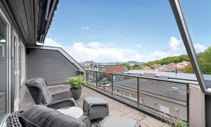 Nyoppusset, smart løst toppleilighet m/ekstra takhøyde og romslig balkong. Utsikt, garasje, heis. Rett i fine turområder. Prisantydning