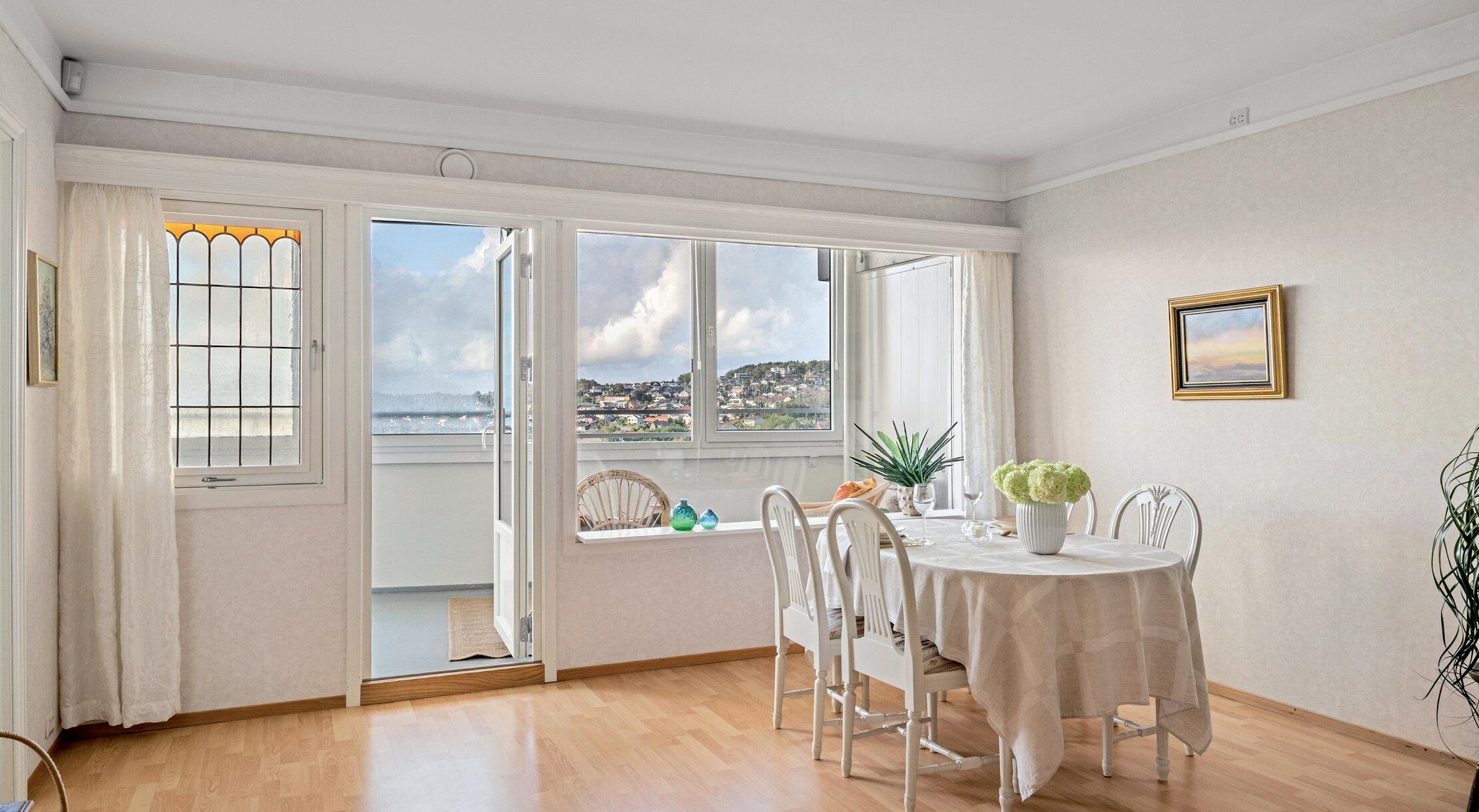 Utsiktsleilighet m/parkering i carport. Rett i herlige turområder. Adskilt vaskerom, romslig stue/kjøkken. Raskt på E39.