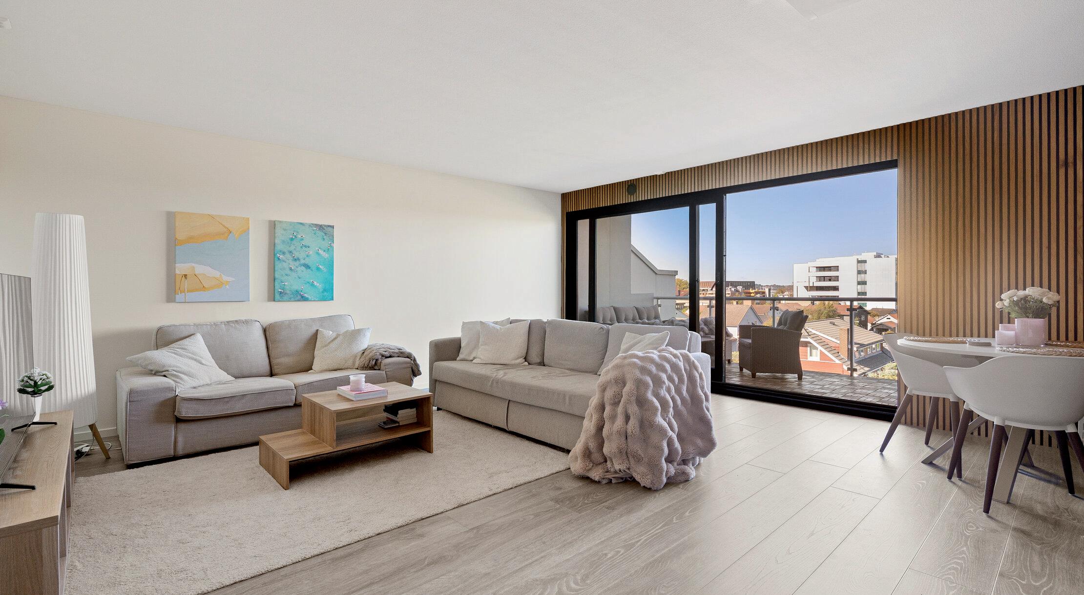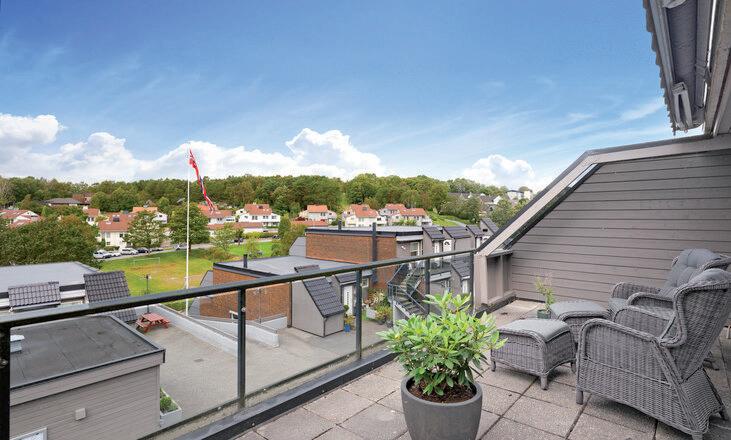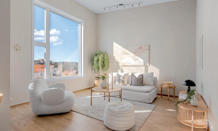 Lys og moderne leilighet i øverste etasje i Sola sentrum med flott utsikt og god takhøyde som gir en luftig romfølelse. Leiligheten har bla. en romslig stue/kjøkken-løsning med lyddempende spileplater.
