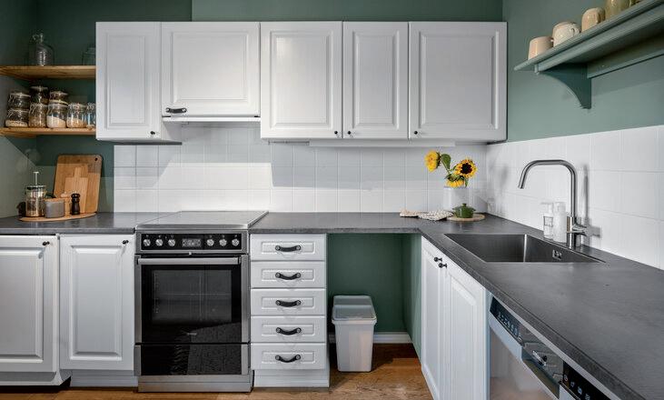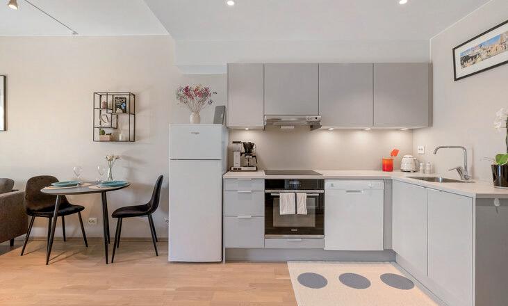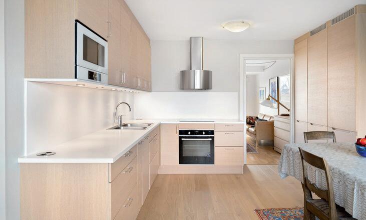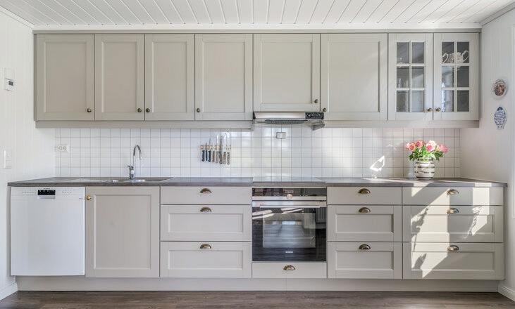 * Lekkert kjøkken fra 2015 med integrerte hvitevarer.