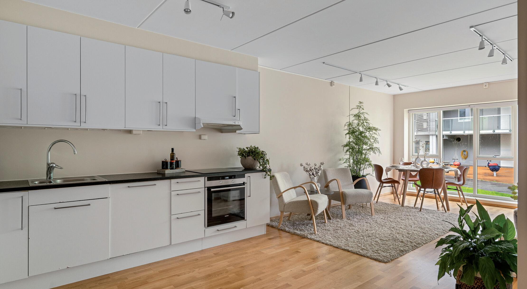 Av boligens mange kvaliteter kan det spesielt nevnes: - Attraktiv planløsning med romslig stue kjøkken løsning. - Parkering i lukket anlegg. - Praktisk bod like utenfor leiligheten.