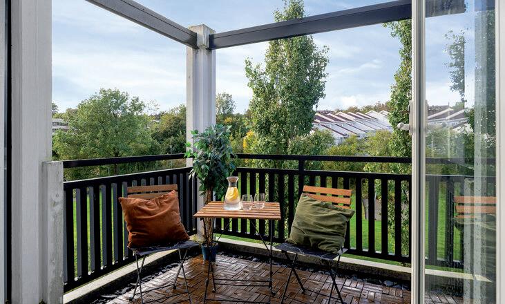 * Kjekk sørvestvendt innglasset balkong på 10 kvm.