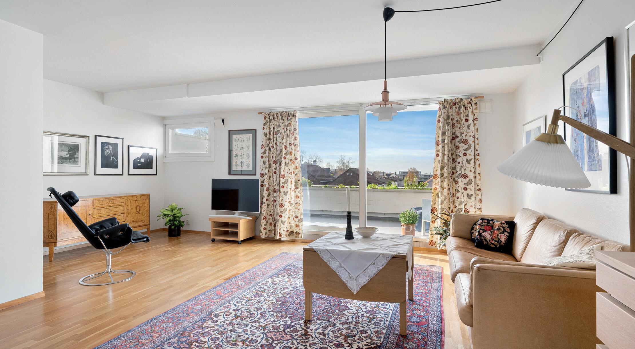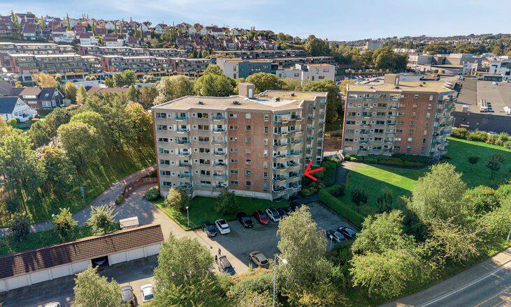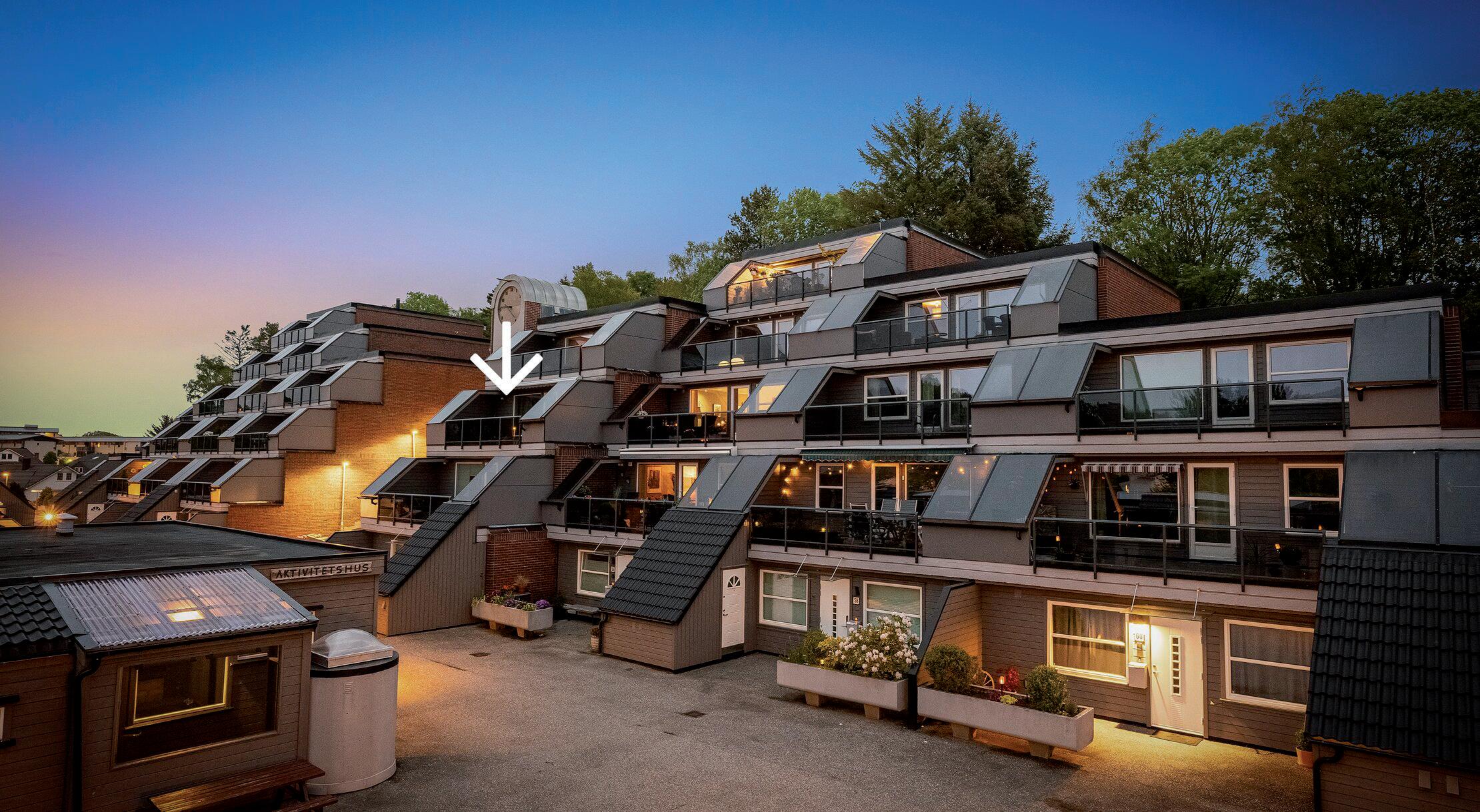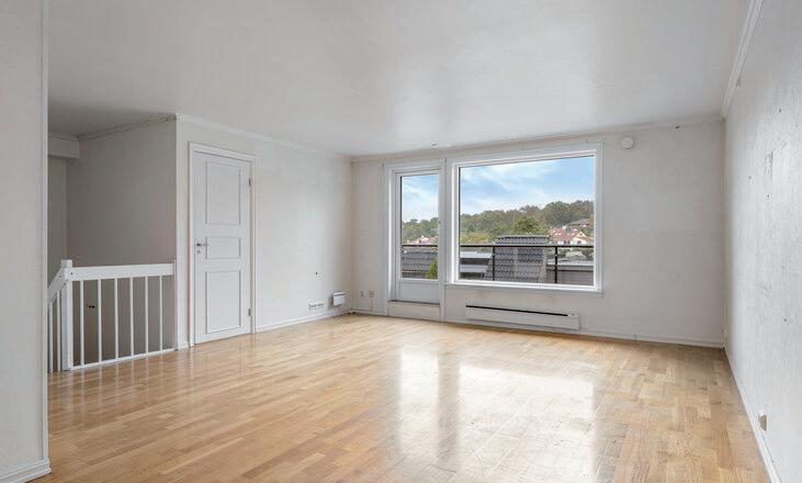Romslig leilighet over 2 plan med 3 soverom. Solrik terrasse og utsikt. Parkering m/ elbillader. Noe innvendig moderniseringsbehov må påregnes. Godt med lagringsplass.