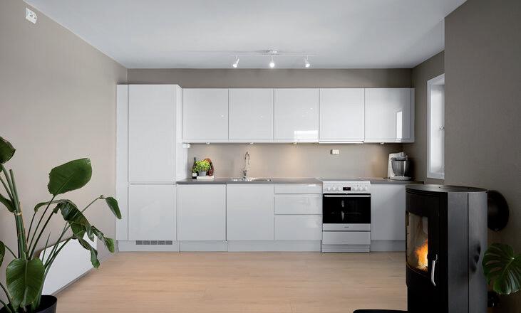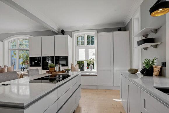 - Lekkert, eksklusivt og påkostet Crown-kjøkken og vaskerom i 2021 med hovedsakelig kvalitetshvitevarer fra Miele.
