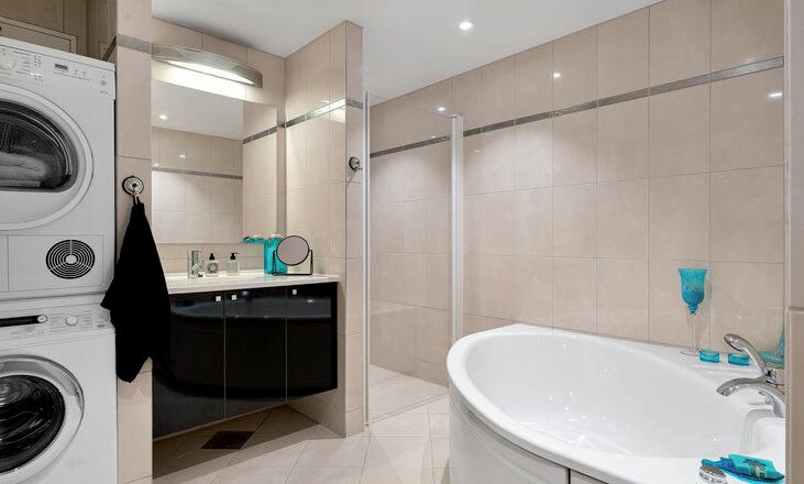 Lettstelt leilighet med heis i bygget. Utvidet flislagt bad m/dusj og badekar. Kjøkken i eik m/integrerte hvitevarer. Innglasset hagestue. 2 soverom. Fast parkering i lukket anlegg. Velkommen til visning!