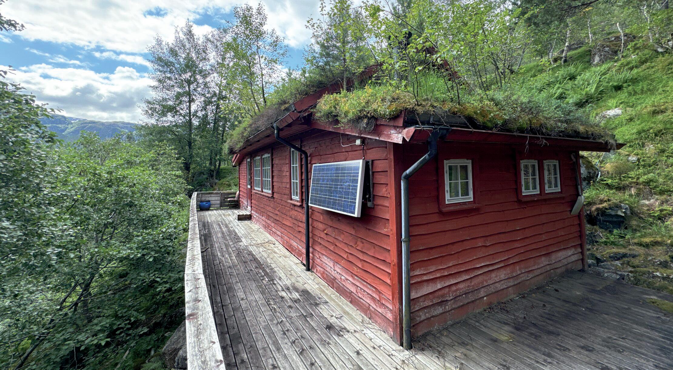 Hytte med fin, avskjermet beliggenhet. Utbedringer/ renovering må påregnes. Solcelleanlegg. Ca. 5-10 min. å gå fra parkeringsplass.